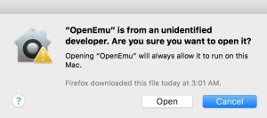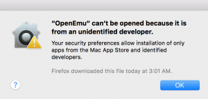 Otherwise you will get “OpenEmu can’t be opened because it is from an unidentified developer” error when trying to open the file.